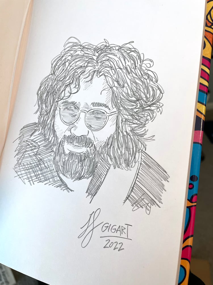 I am offering one of these books where I drew an original pencil portrait sketch of Jerry in the front of the book, signed by me back in 2022.