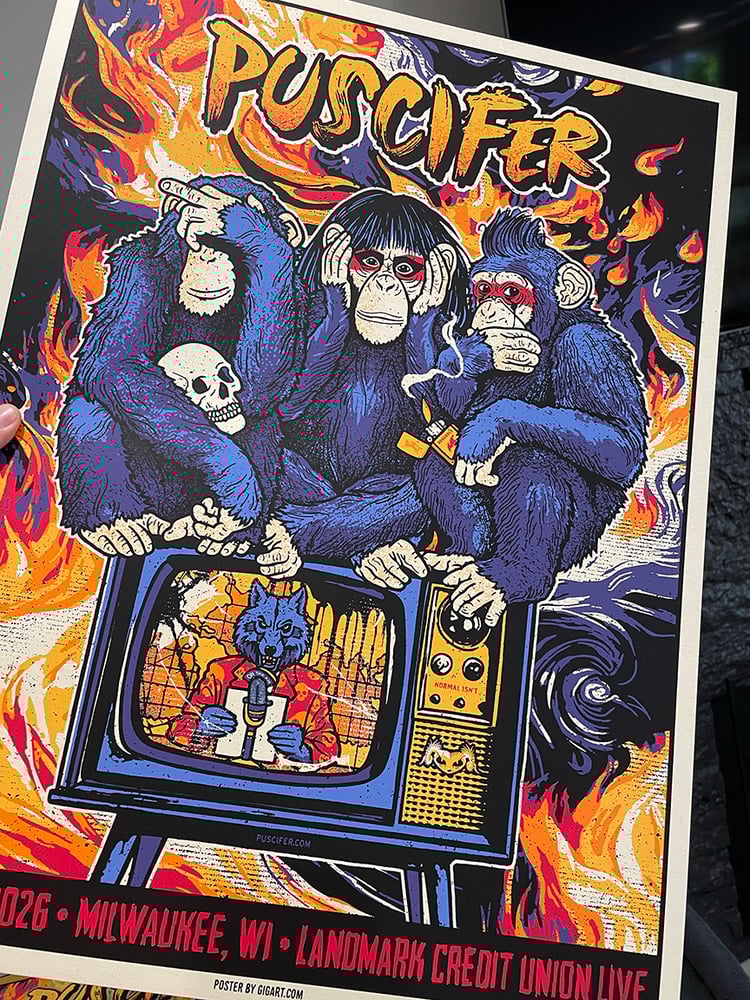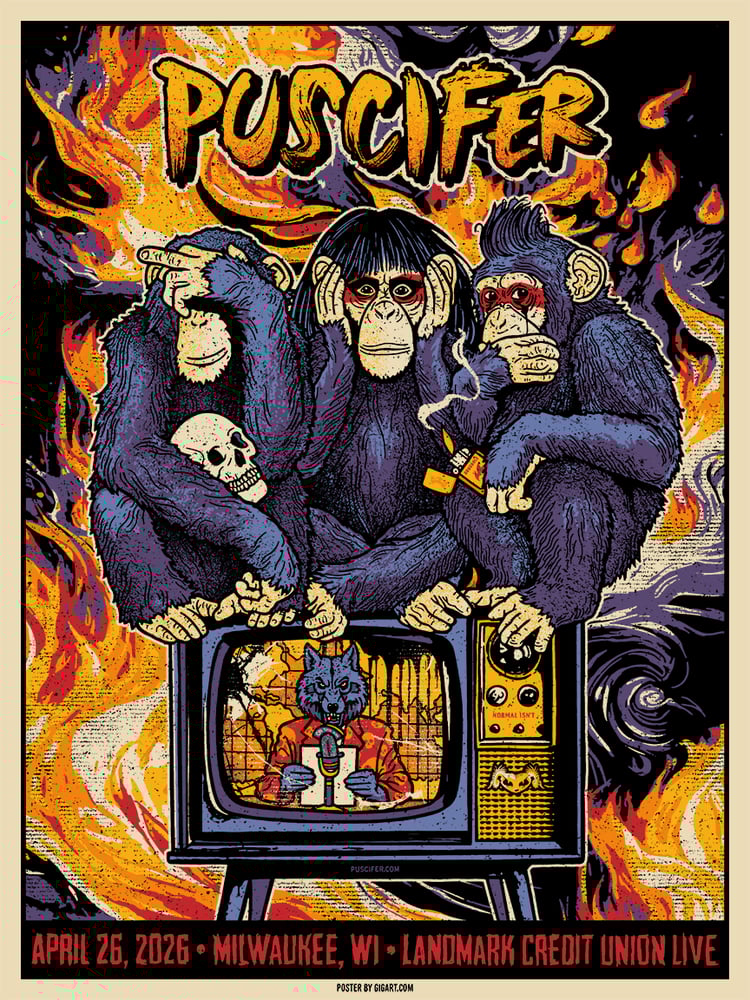 Puscifer poster for their show on April 26, 2026 in Milwaukee, WI at the Landmark Credit Union Live.